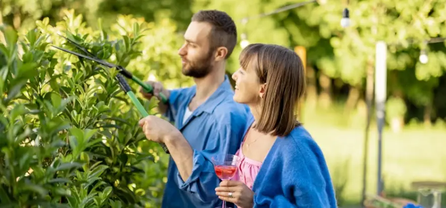 Based on hedge size and species, we select modern trimming tools for clean results.
